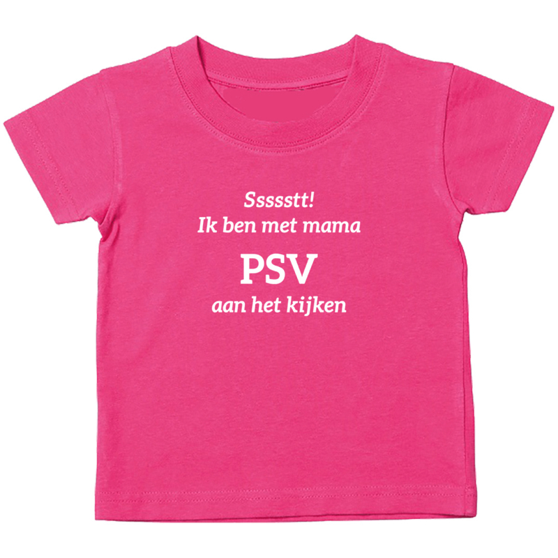 Kinder T-shirt met de opdruk: Ssssstt ik ben met mama PSV aan het kijken