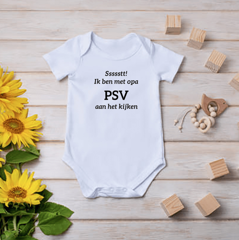 Sommige liefdes worden met de paplepel ingegoten. Voor veel gezinnen in Brabant en ver daarbuiten hoort PSV daar absoluut bij. Met de baby romper met de tekst “Ssssstt! ik ben met opa PSV aan het kijken” laat je op een grappige en herkenbare manier zien dat deze kleine nu al meedoet tijdens de wedstrijd. Of opa nu fanatiek voor de tv zit of ontspannen de samenvatting kijkt: deze romper maakt het moment compleet.