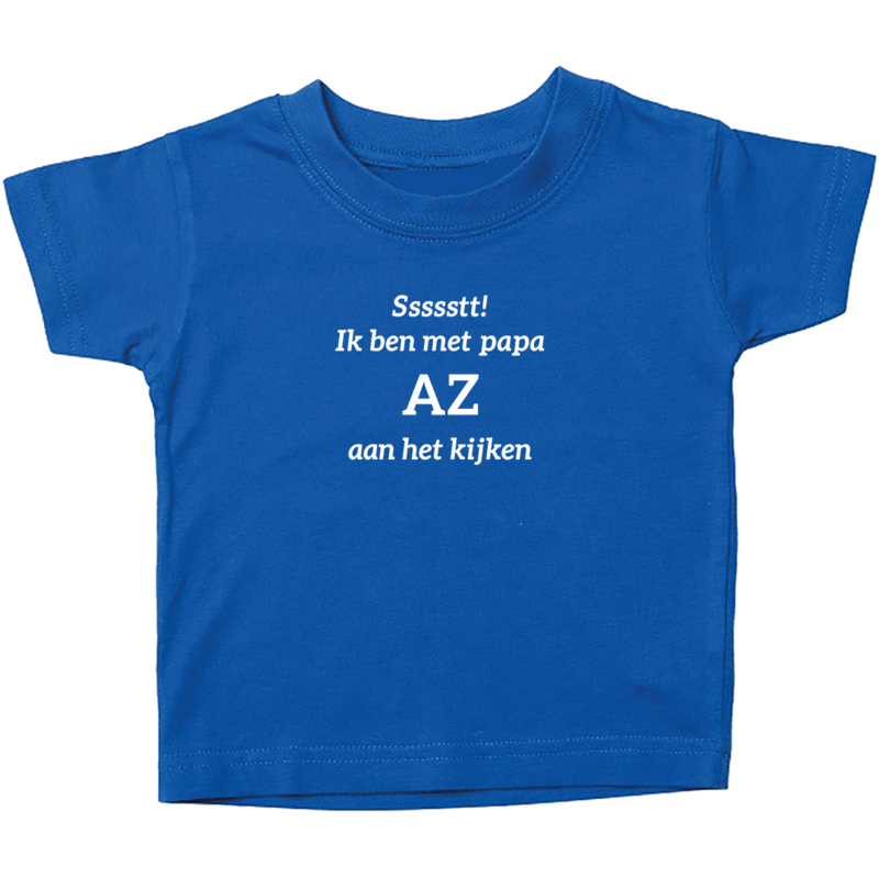 Met dit kinder T-shirt met tekst “Ssssstt ik ben met papa AZ aan het kijken” weet iedereen precies hoe laat het is.